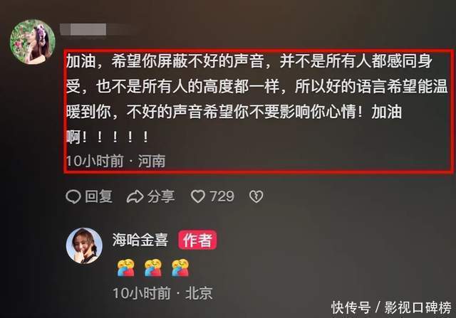 也有网友友好的留言:不好的声音希望你不要影响你心情,加油啊!