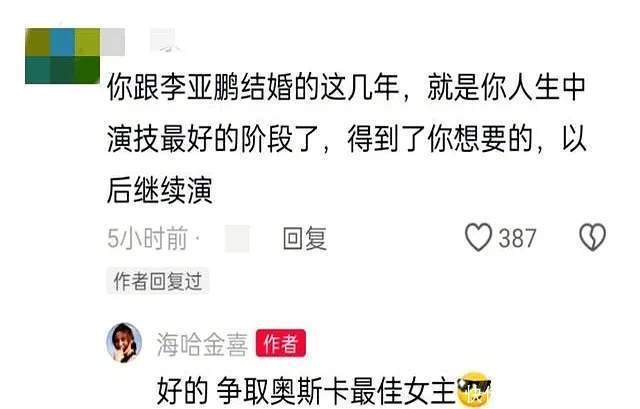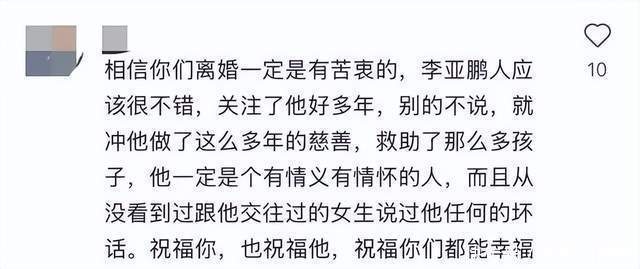 有网友表示:相信你们离婚一定是有苦衷的,李亚鹏人应该很不错。