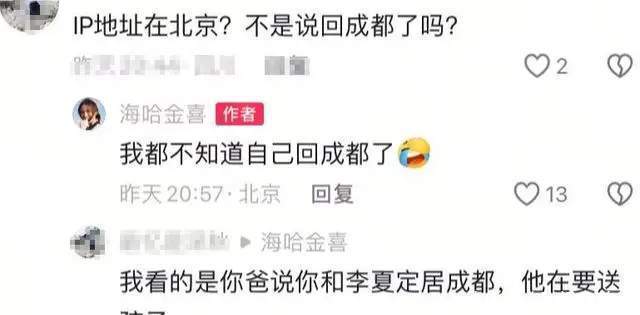 更搞笑的是,有网友留言:不是说回成都老家了吗?海哈金喜这样回答:我都不知道自己回成都了!没有得罪网友,轻轻松松表明了自己的立场。